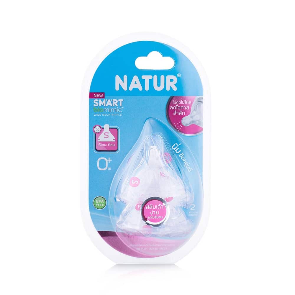 Natur จุกนม Smart Biomimic คอกว้าง ไซส์ S แพ็ค 2 ชิ้น จุกนมหลายรู เสมือนดูดจากอกแม่